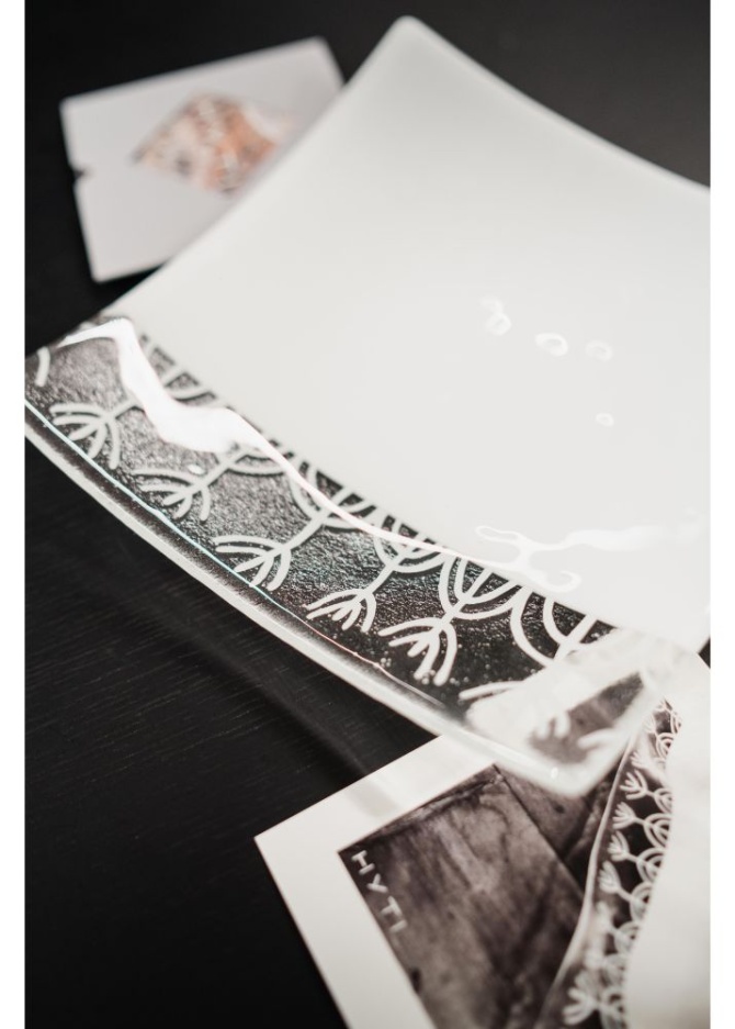 Decorate your home or office with beautiful Estonian patterns! This stylish and elegantly shaped platter is inspired by traditional patterns.