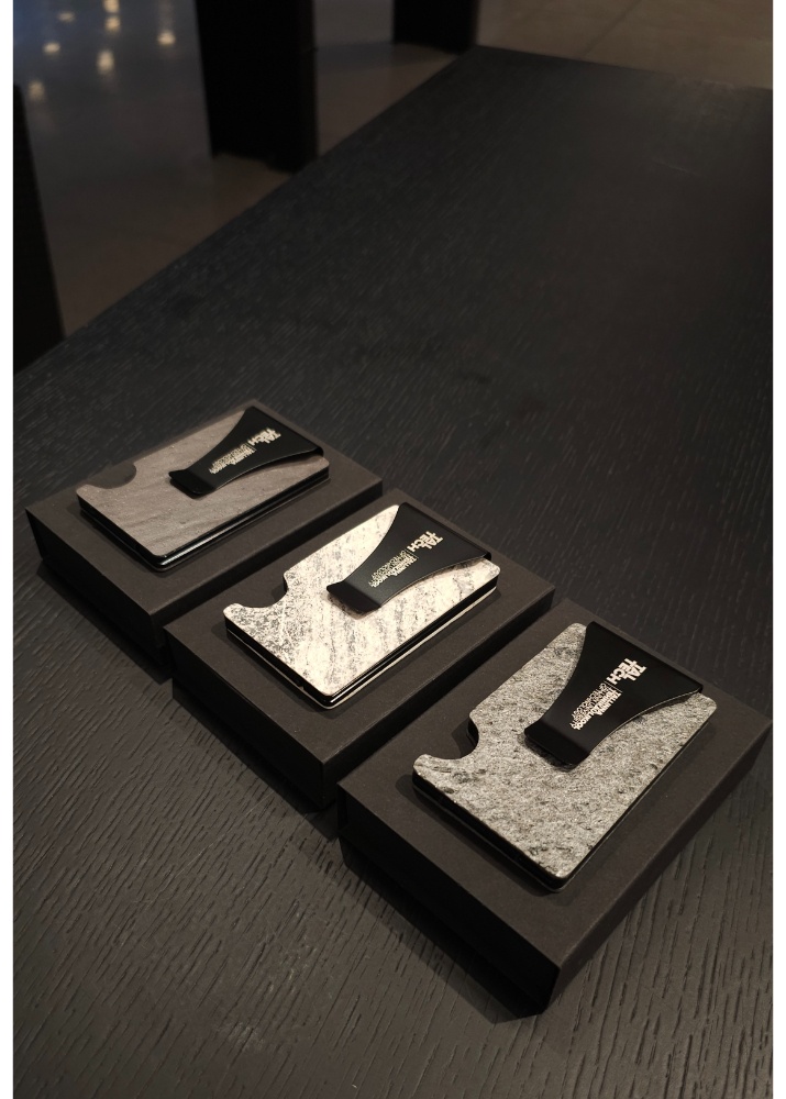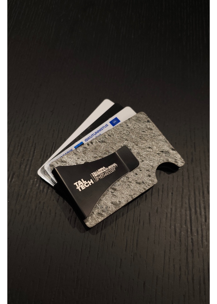This unique metal card holder "Marine Marble" is produced sustainably and created by a TalTech student. The card pocket is light, comfortable and has a well-thought-out design to make your life comfortable through minimalism. This stylish card holder is decorated with natural marble. Beautiful marble is usually formed when carbonate rocks are exposed to high temperatures and pressures, such as in tectonic movement.