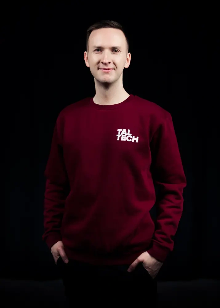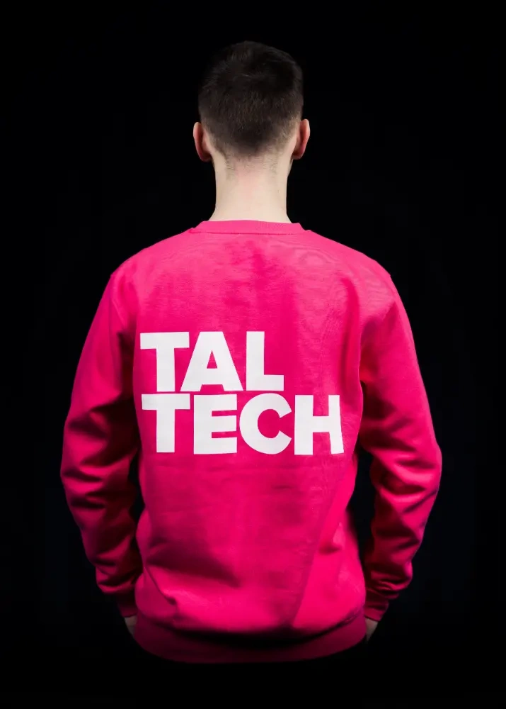 Large printed TalTech logo on the back and a small printed logo on the chest.
