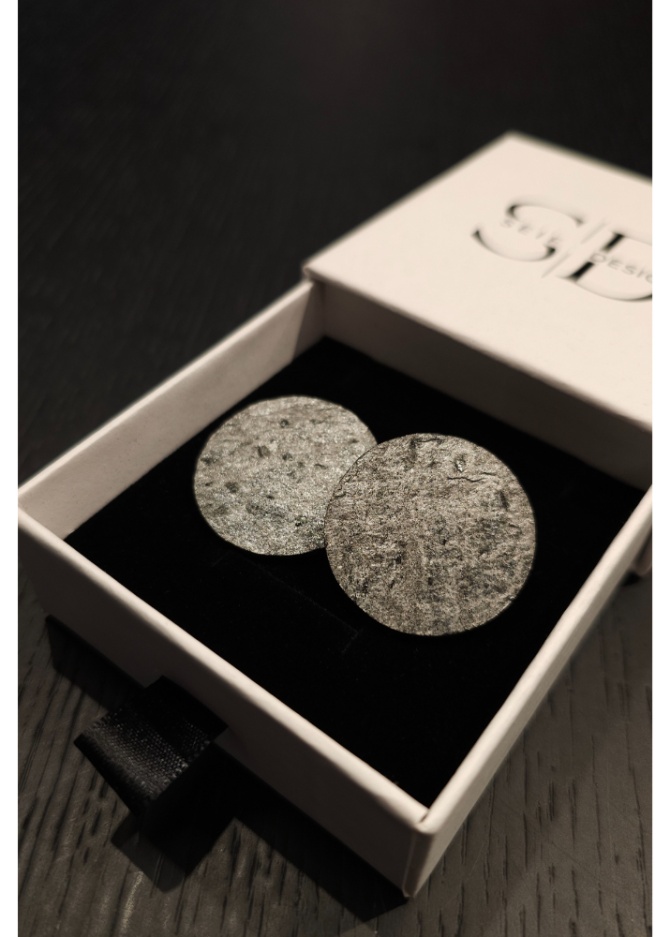 The "Dark birch" earrings shine in their simplicity and are a stylish addition to every hairstyle and outfit. The earrings are made with natural slate and are surprisingly lightweight. The earrings are produced by a TalTech student and with sustainable mindset.