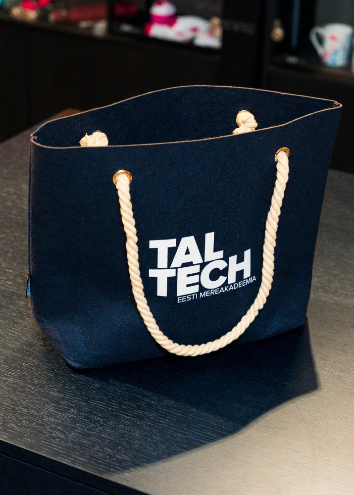 The Mereakadeemia felt tote bag is a durable and convenient companion for everyday use. It is made from RPET felt — that is, felt produced from recycled plastic. The practical rope handles make it easy and comfortable to carry.