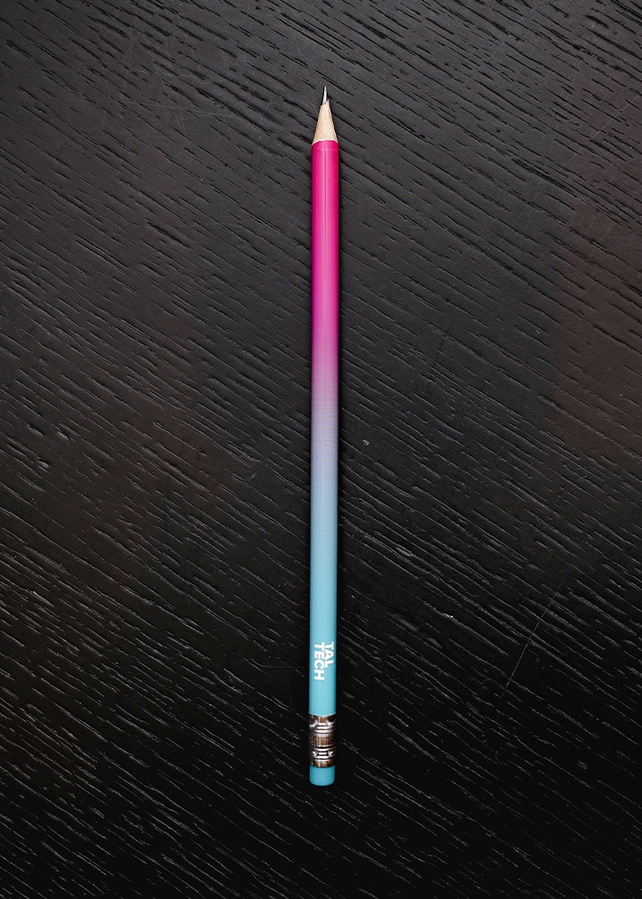 A comfortable and classic pencil with an eraser is a great tool for drawing in lectures or just doodling for fun. This round-shaped pencil has high-quality graphite, a beautiful pink-blue cover, and a bright blue eraser. The pencil is good to use in meetings and lectures or as an alternative to pens handed out at events.