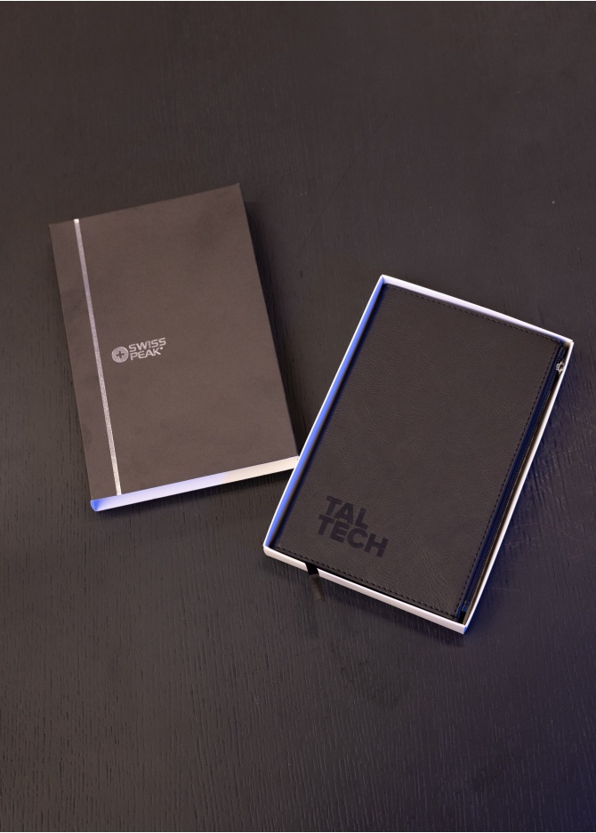 This A5 Swiss Peak notebook is high quality and practical. With its convenient zipper front pocket you can store other important essentials with you on the go. It has 160 of cream coloured lined pages for all your ideas and notes. Comes in gift box.