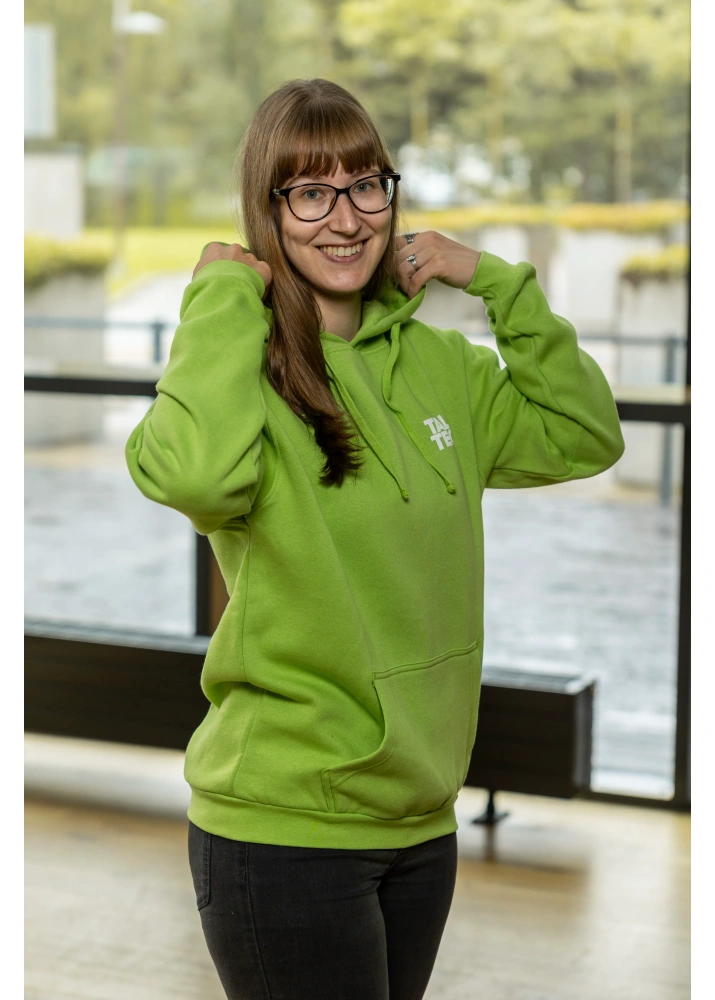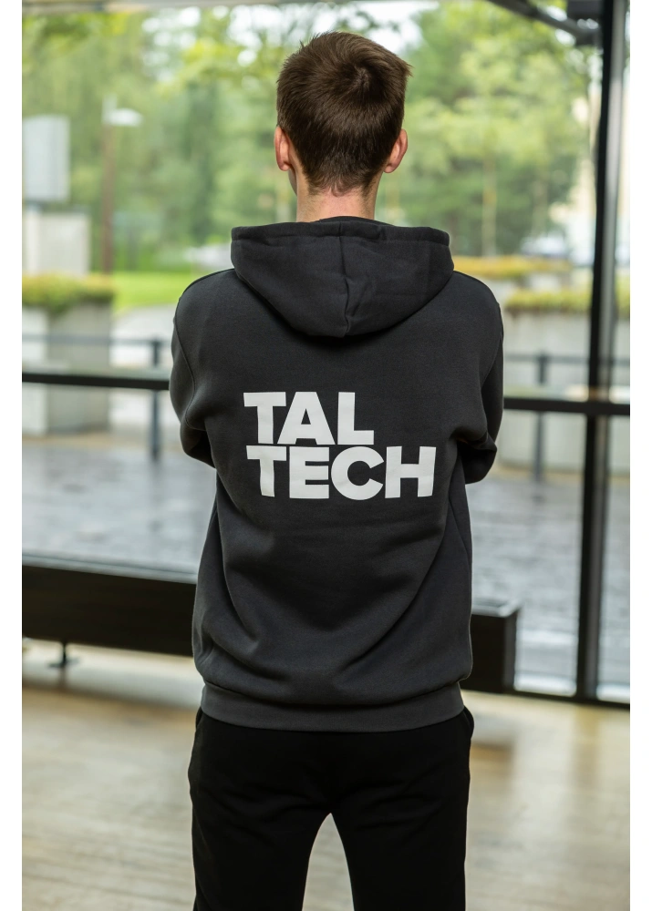 Kassikaline unisex pusa kapuutsiga ja eest suure taskuga. Seljale on trükitud suur ning rinnale väike TalTech logo.